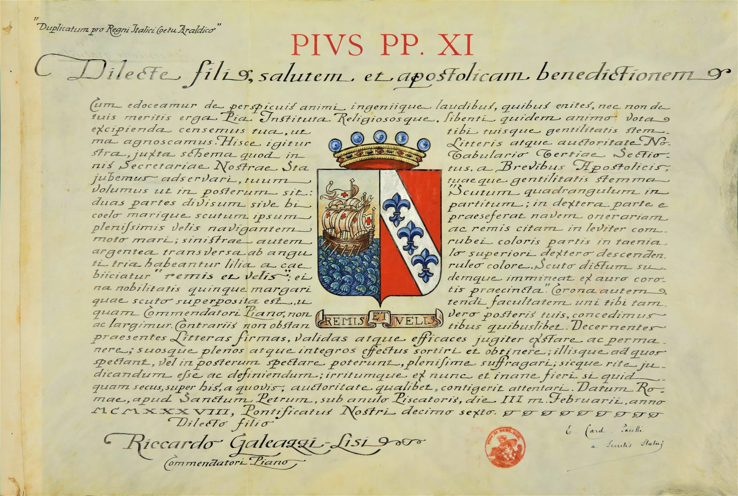 An extraordinary Vatican document, signed by Eugenio Pacelli before he became Pope Pius XII, conferring nobility on a young Riccardo — not yet Galeazzi-Lisi — and foreshadowing the bond that would one day bind the two men in scandal.